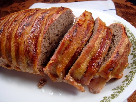 Faites cuire le pain de viande à environ 15 cm de l'élément à griller jusqu'à ce que le bacon soit doré et croustillant, environ 3 minutes, mais surveillez-le attentivement. Laissez reposer pendant 10 minutes.Transférez sur une planche à découper ou un plat de service avec une grande spatule et coupez-les en 0,75 - tranches de 1 pouce d'épaisseur.