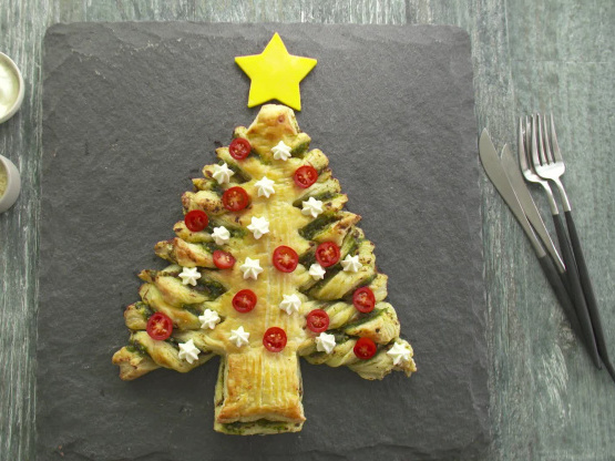 Fabriquez et partagez cette recette d’arbres de Noël farcis au pesto.