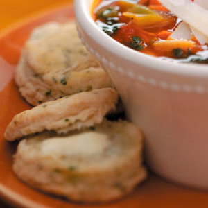 Ces biscuits tendres et dorés ont une saveur subtile de citron et de ciboulette qui complète délicieusement la soupe Very Veggie. — Jim Gales, Glendale, Wisconsin