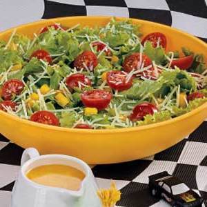 Darlis Wilfer, de Phelps, dans le Wisconsin, apporte une salade sensationnelle à notre menu. Sa vinaigrette a la carotte aigre-douce se marie parfaitement à une combinaison de laitue, de tomates et de poivrons.