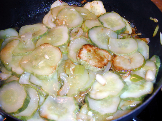 Faites chauffer une grande poêle antiadhésive et ajoutez de l'huile, du beurre et des concombres; Sauter à feu moyen-vif pendant 5 minutes en remuant TOUT le temps.