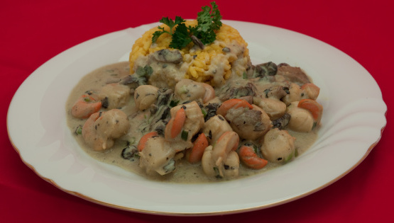20 minPacifique Sud Ouestbeurre, champignon, échalote, escalopes, Crème fraîche, poudre de curry, jus de citron, farine, assaisonnement,coquilles Saint-Jacques et champignons à la crème sure -