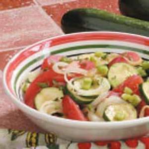 Des tomates fraîches au goût frais, des courgettes, du poivron vert et des oignons sont assaisonnés avec de l'ail et du persil dans ce plat d'accompagnement rapide et chaud. Cette recette est idéale pour la famille qui jardine à cause des légumes qu'elle utilise ", note Kathy Fielder de Dallas, Texas.