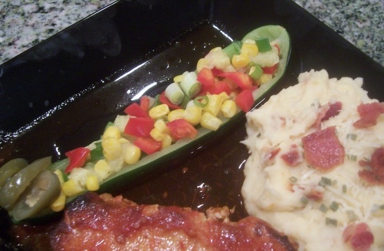 Verser environ 2 cuillères à soupe de mélange de maïs dans chaque coquille de courgette.