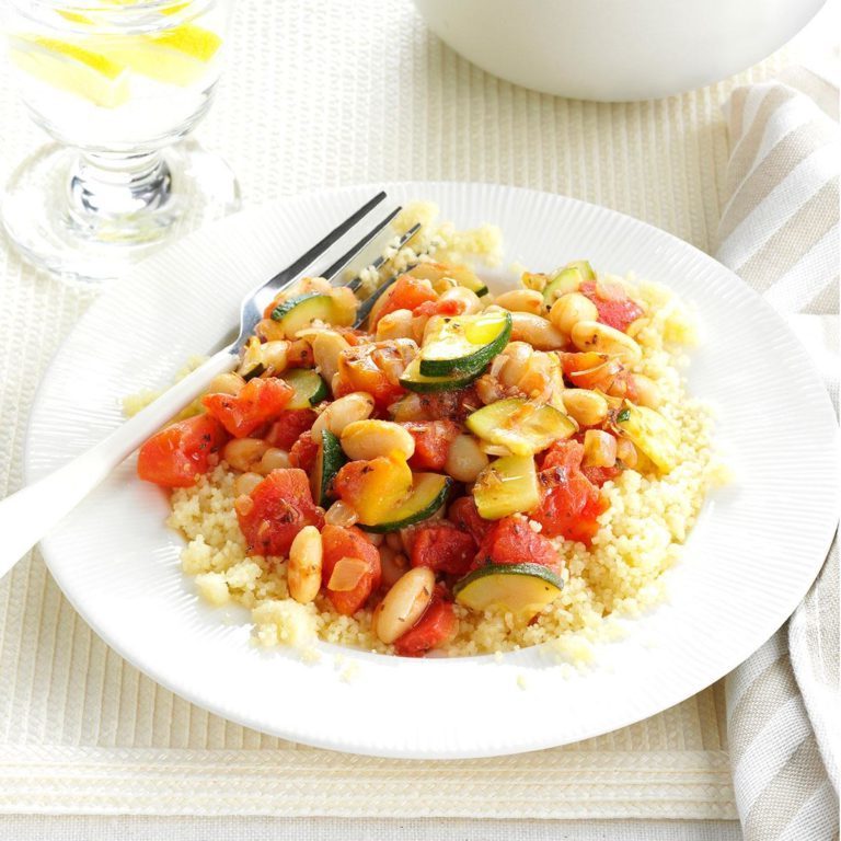 Couscous garni de haricots blancs, de tomates et de courgettes