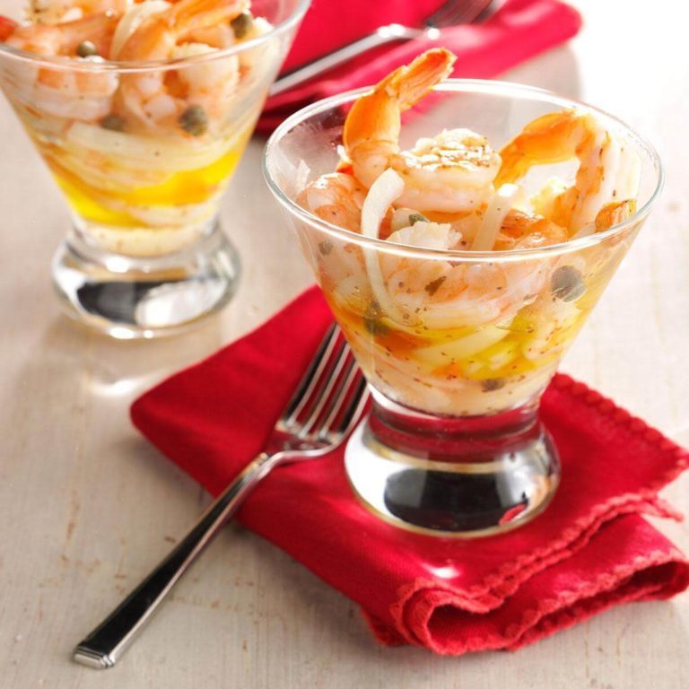 Cette recette rafraîchissante est l'une des préférées de mon mari. J'aime servir les crevettes aigres-marinées au vinaigre lorsque nous divertissons. Les gens disent que cela crée une dépendance! Kathy Wright, région montagneuse, Californie