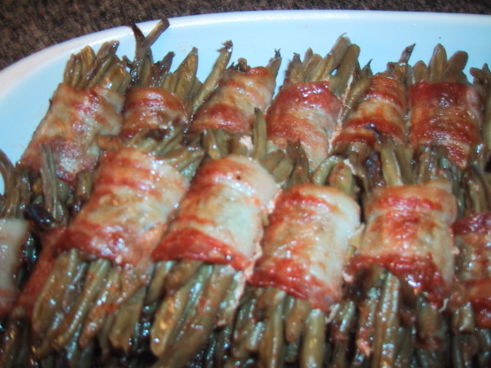bacon.Bake environ 25-30 minutes jusqu'à ce que le bacon soit brun et les haricots soient cuits.En attendant, râpez 0,25 à 0,5 oignon pour obtenir son jus et mélangez avec le reste des ingrédients dans un verre pyrex.Micro-ondes 1-2 minutes jusqu'à beurre est fondu.Bien mélanger.Lorsque les bottes sont cuites, plonger chaque botte dans la sauce et la déposer dans un plat de service.Pour la sauce restante sur les bottes et servir.Ces bottes peuvent être assemblées à l'avance avec la sauce conservée séparément.Ces bottes ne gèlent pas précuit..