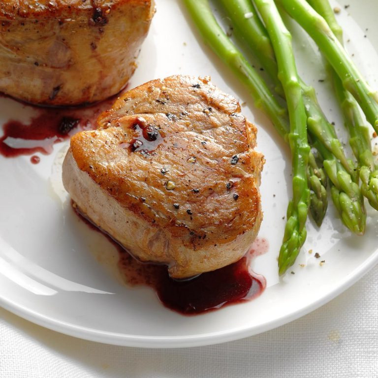 Filets de filet de porc au vin