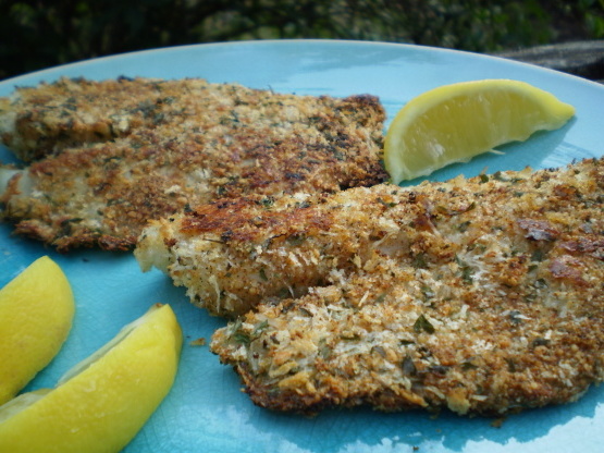 Une excellente alternative moins grasse au poisson frit, utilisez votre choix de poisson pour cela --- toutes les quantités d'épices peuvent être ajustées au goût, en fonction de la taille de vos filets de poisson, il vous restera peut-être de la panure à conserver au réfrigérateur. .