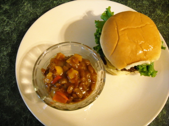 J'ai plusieurs recettes de haricots au four, et elles semblent toutes convenir à une période ou à une occasion particulière. Ce sont les haricots au four que je prépare traditionnellement le dimanche du Super Bowl. Ils se marient très bien avec mon porc effiloché et d'autres plats de mon menu. Je vous préviens que cette recette fait BEAUCOUP de haricots.Cette recette est facilement augmentée ou diminuée.Utilisez une boîte de 794 grammes de haricots pour six personnes.