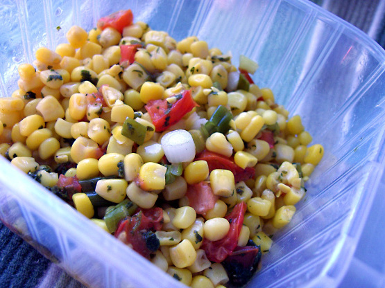 Je préparais un dîner à thème espagnol l’autre soir et j’ai imaginé ce plat de maïs qui s’est très bien déroulé avec mon repas. Mon mari m'a dit que je devrais poster ceci sur recipezaar. Alors c'est elle. Prendre plaisir