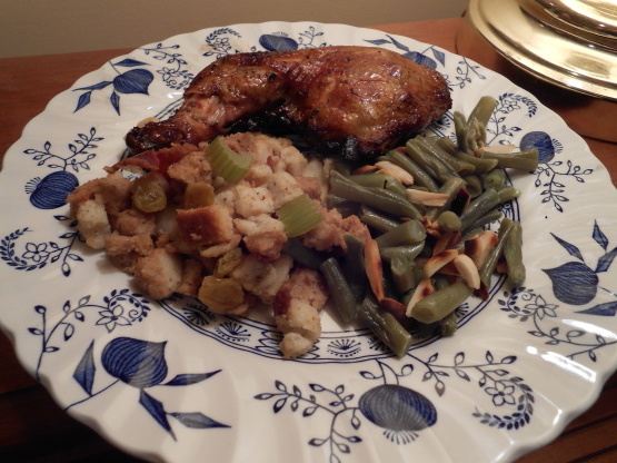 Si vous préférez cuisiner séparément, placez la farce dans une casserole en verre et faites cuire pendant 30 à 40 minutes à 375