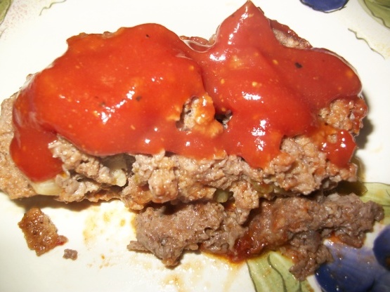 80 minPlat principaldes œufs, Lait, pain, onion, sel, poivre, sauge, du boeuf, ketchup, sucre, moutarde,le pain de viande de beth -
