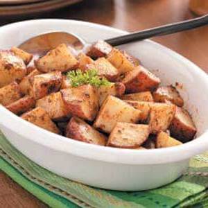 Placez les pommes de terre dans un plat de 2 litres. Au micro-ondes. Dans un petit bol, mélanger le beurre, le sel assaisonné, le paprika, le persil et l'ail. verser sur les pommes de terre et mélanger pour bien enrober.
