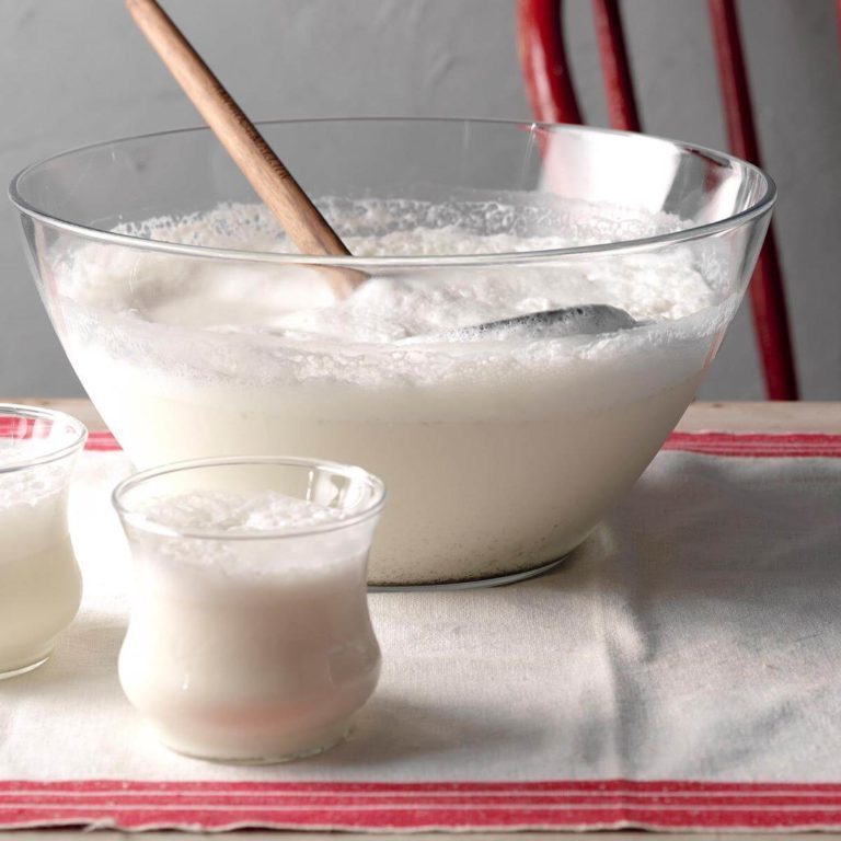 battre jusqu'à ce que mousseux.Verser dans un bol à punch froid.Laissez reposer pendant 15-20 minutes ou jusqu'à ce que la mousse s'élève vers le haut..
