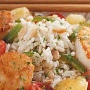 Un côté de riz aux amandes parfumé complète à merveille la plupart des plats. "Quand je sers cela, je saupoudre les bords d'un grand plat de service avec du persil frais, ajouter le riz aux amandes et garnir le tout avec les pétoncles.Il fait une belle présentation." Tonya Michelle Burkhard, - Davis, IL