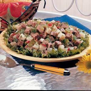 La salade de bœuf rôti et de pommes de terre vient de Joanna Lonnecker d'Omaha, dans le Nebraska. «Cette salade consistante est un favori des membres de notre famille qui« mangent des pommes de terre et des pommes de terre », écrit Joanna.