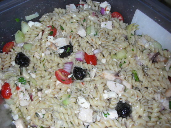 Faites et partagez cette recette de salade de pâtes avec nœud papillon grec.