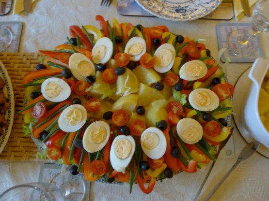 J'aime le saumon frais et fumé, mais je ne dois jamais utiliser la variété en conserve ni même me procurer un livre de recettes au saumon. Cette recette est la première des deux que j'ai trouvées à et ils ont reconnu Marilou Robinson de Portland, OR. "La liste des ingrédients a l'air longue, mais rien de tout cela ne prend beaucoup de temps à préparer et tout peut être fait à l'avance.Parce que cette salade doit être préparée à l'avance et réfrigérée, c'est un bon choix pour un souper du dimanche au soir. arrivez, réchauffez un assortiment de petits pains raffinés de votre boulangerie préférée et détendez-vous avec votre entreprise.Tout le monde sera impressionné et bien nourri.La recette peut facilement servir autant que vous le souhaitez en augmentant simplement la quantité d'ingrédients et en utilisant un plus grand . " Prendre plaisir! (Le temps a été estimé et n'inclut pas le temps nécessaire pour que les haricots, les œufs et les pommes de terre se refroidissent une fois cuits)