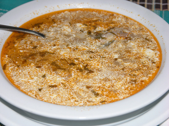 C'est une excellente soupe d'hiver ou une soupe après de longues fêtes de beuveries et de repas. Utilisez les cuisses de porc, la tête (avec le cerveau), les côtes et les autres parties moins intéressantes.