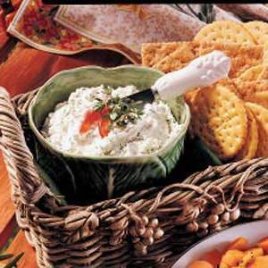 Dans un bol, mélanger le fromage à la crème, le thym, le persil et l'ail; bien mélanger.Couvrez et réfrigérez jusqu'au moment de servir.Servez avec des craquelins..