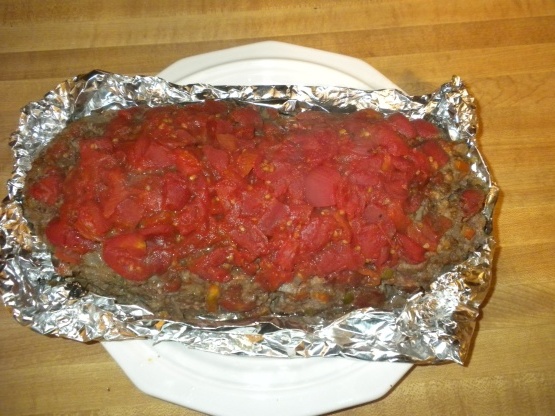 Nous avons toujours fait ce pain de viande aussi longtemps que je me souvienne. Quand je dis aux gens que nous n'utilisons pas de charges, ils demandent toujours s'il tombe en morceaux.Il ne le fait pas.Vous devez le laisser reposer pendant 5 à 10 minutes avant de le couper. Parfois, je mets du fromage cheddar.